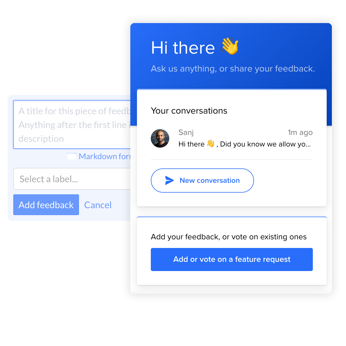 Add feedback right there and then, when talking to a customer. No need to switch to a separate website to submit their feedback.